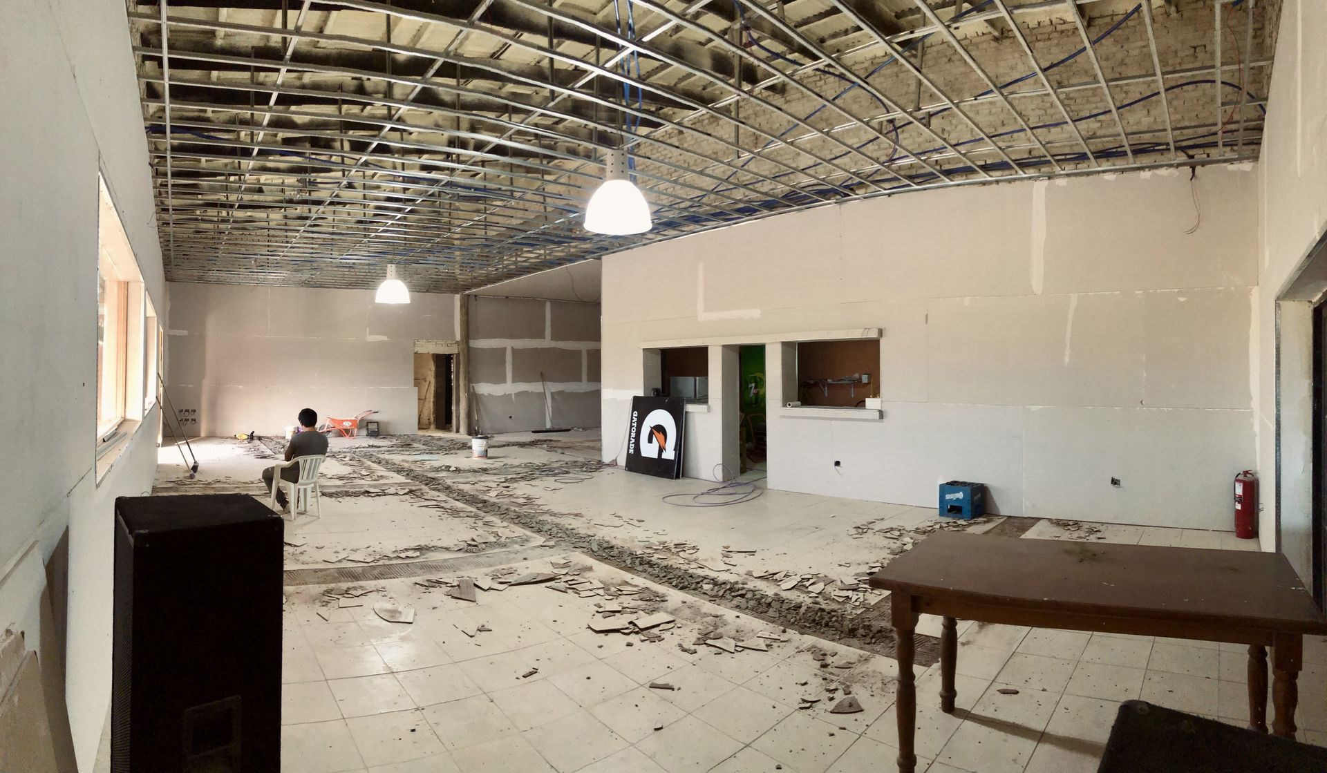 - Proyección de yeso interior y revoque exterior.